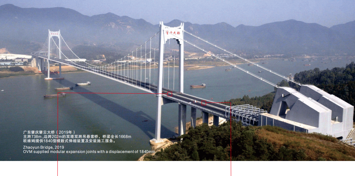 The Strip seal type, Modular type, Finger type of expansion joints system developedby OVM have outstanding reliability and durability, providing the best solution forbridges. The products are widely used in various bridge engineering, demonstratingOVM's outstanding achievements in this field.