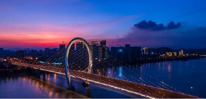 The span from the tower to the opposite abutment is 117m.The Buguan Bridge across the Hanxi River is designed as a single tower asymmetric slanted bridge with the image of the string moon, with a total length of 138 meters.