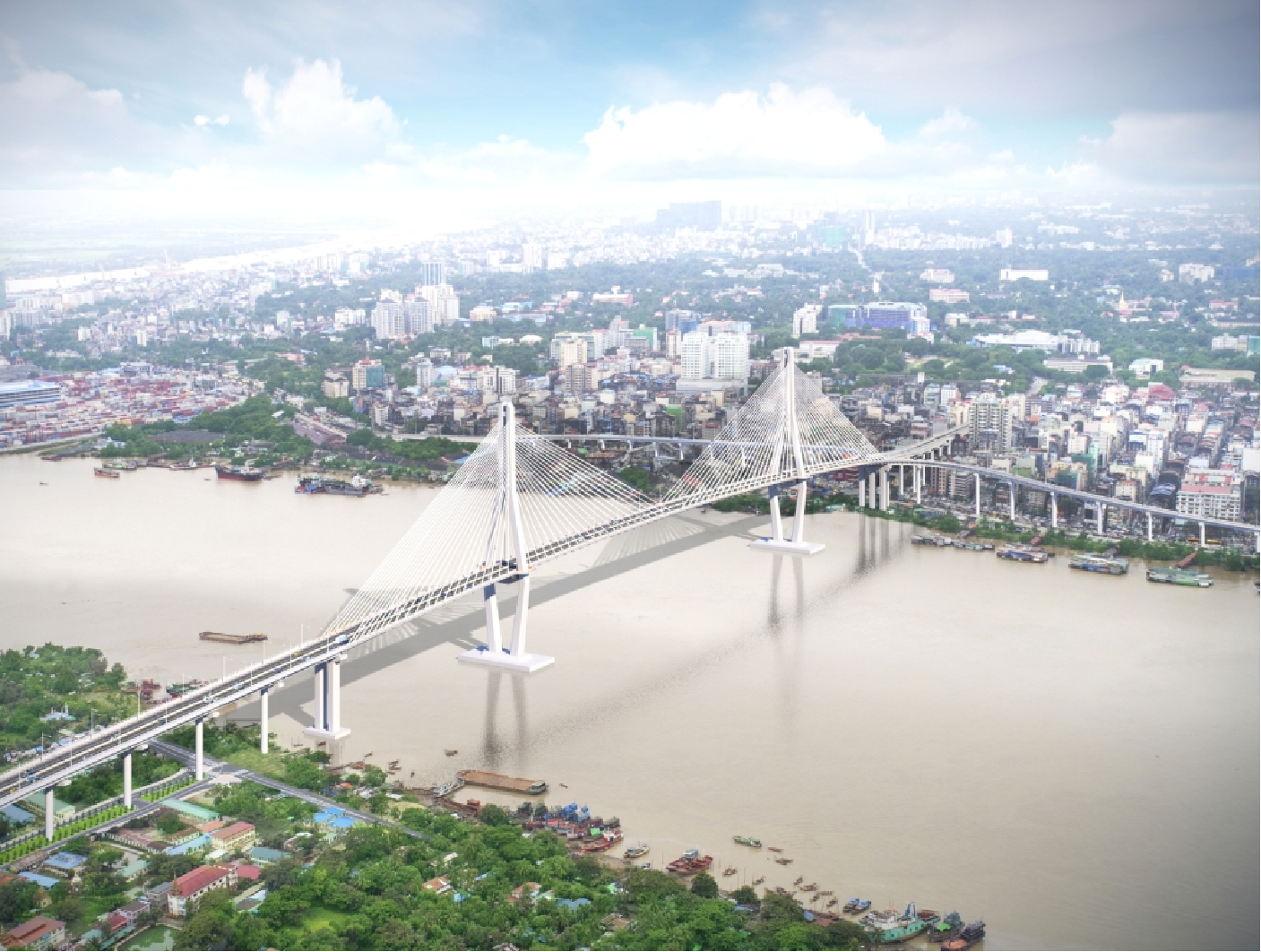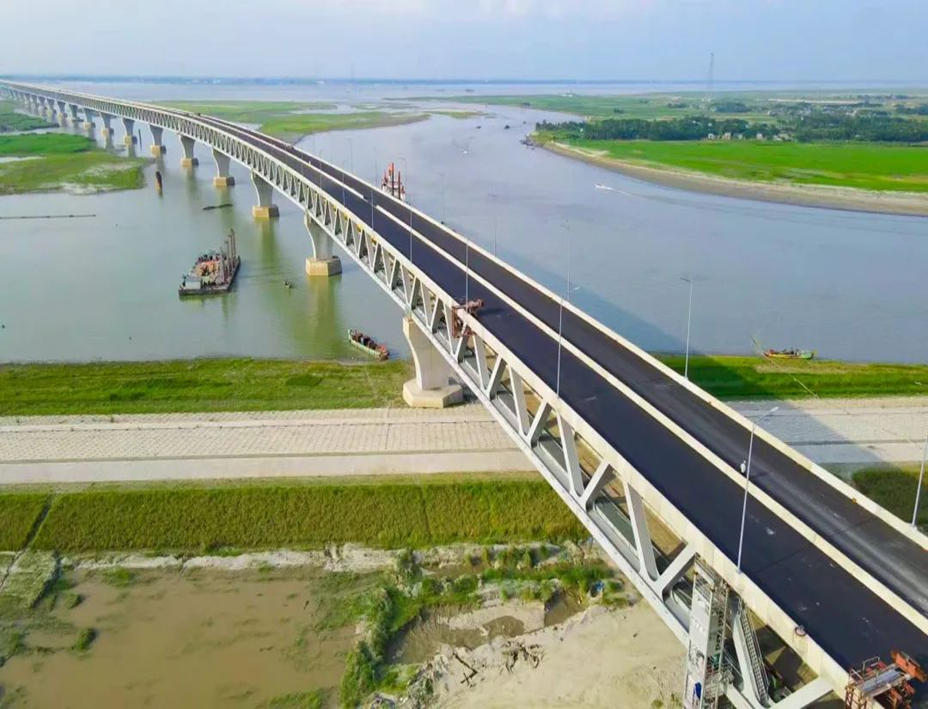Padma bridge is located about 40 kms southwest of Dhaka. It crosses the padma river. It is a dual highway and rail bridge with a two-way four-lane highway at the upper level and a single-lane railway at the lower level. Its superstructure consists of steel truss-beams with 41 holes and a span of 150 meters.The main bridge is 6,150 meters long and 21.65 meters wide.