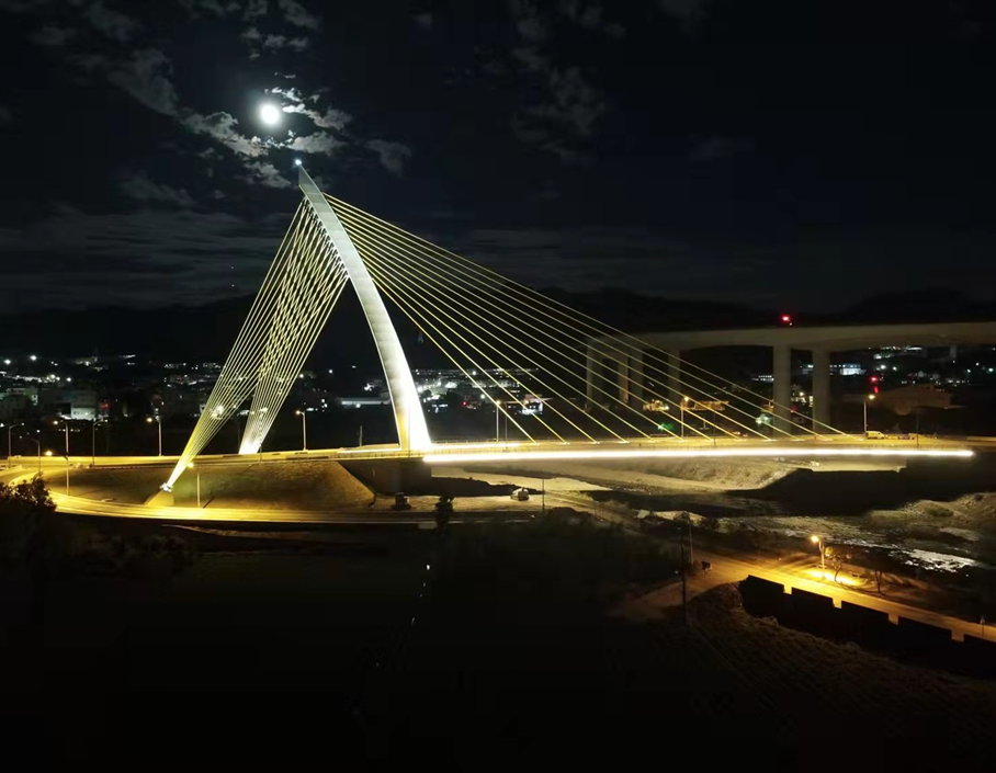 The whole systemic materials include appr.1300 tons of PE strand, 224 sets of anchorages, 160 sets of high performance dampers, 25,000+m HDPE Pipes, On-line cable force monitoring system, and accessories,etc.