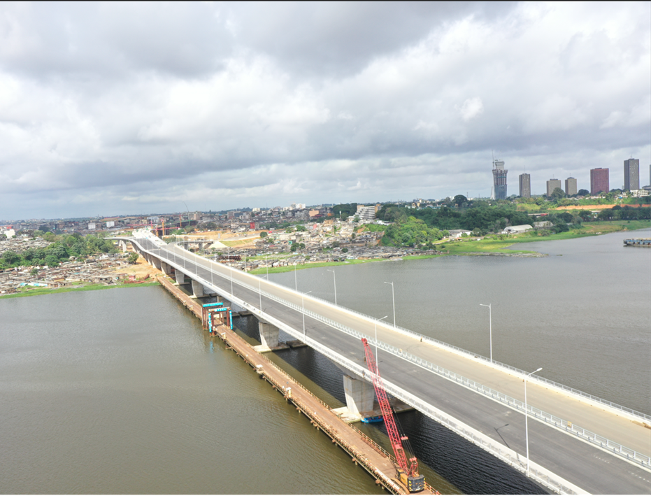 The bridge which extends 1.4 km above Banco Bay is part of a comprehensive project to strengthen transport infrastructure and to decongest the city of Abidjan.