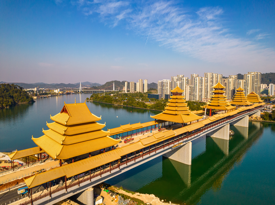 The bridge is currently the largest steel-concrete composite girder bridge in China, the world's largest span, and the largest cross-river Wind and Rain Bridge, whose main span is 700 meters with a 46.6 meters wide deck, and the length of its main line reaches 1.6 kilometers.
