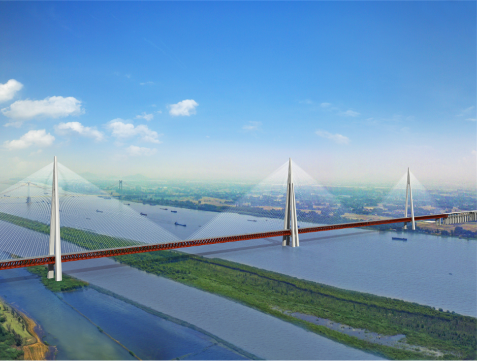 It is the first three-tower cable-stayed bridge in the world with double main spans exceeding 1,000 meters. It is also the longest combined steel truss bridge in the world with total lenth of 3248m.